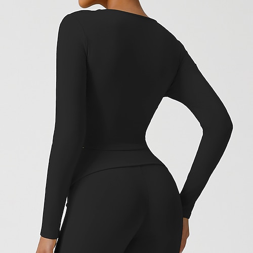 top da balletto traspirante con spacco arricciato tinta unita da allenamento da donna manica lunga modal
