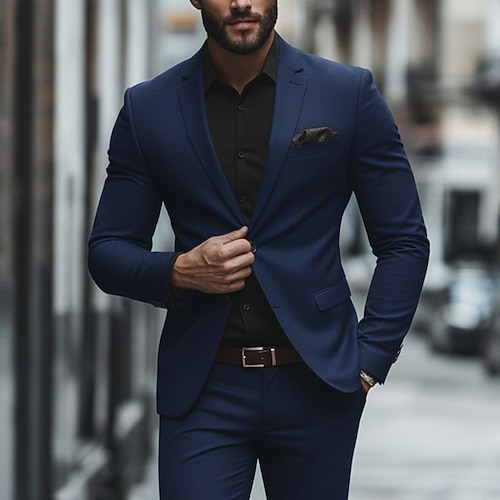 Uomo Casuale Abiti da lavoro Bavero classico Nero Borgogna Quotidiano Affari Tinta unita Vestibilità su misura 2 pezzi Monopetto Due Bottoni