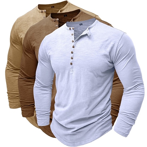 Maglietta Henley da uomo a maniche lunghe, tinta unita, alla moda, casual, confezione multipla da 3 pezzi, per attività all'aperto, casual, estate, primavera, blu, bianco e nero.