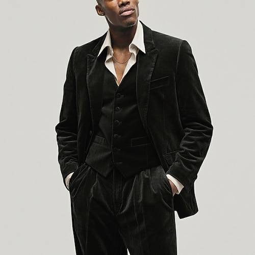 Per uomo Giacca blazer Colletto ad incastro Casual Tinta unita Blazer di velluto Borgogna Marrone Verde militare Vestibilità aderente Monopetto Due Bottoni
