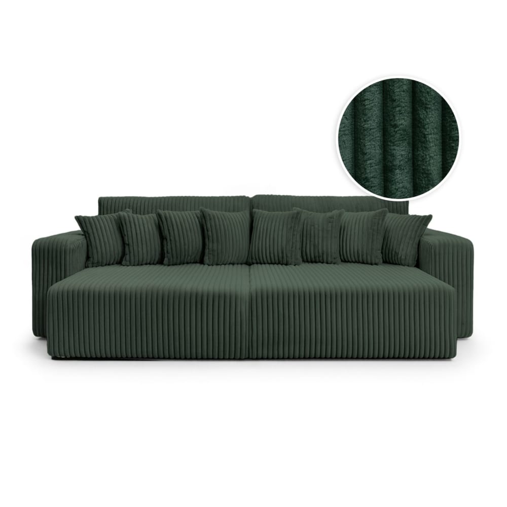 Canapé droit 4 places double méridienne velours côtelé épais vert