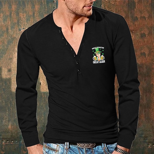 Per uomo Maglietta trifoglio di San Patrizio Camicia Henley Magliette T-shirt San Patrizio Henley Da mare Strada Manica lunga Fibbia Abbigliamento Poliestere Di tendenza Festa di San Patrizio