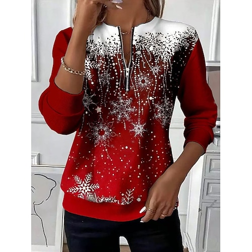 Per donna Felpa Pullover Felpe con cerniera Grafico Fiocco di neve Moda Casual Manica Lunga Girocollo Top Regolari Streetwear Abbigliamento Quotidiano Cerniera Stampato Nero Rosso Rosso e Bianco