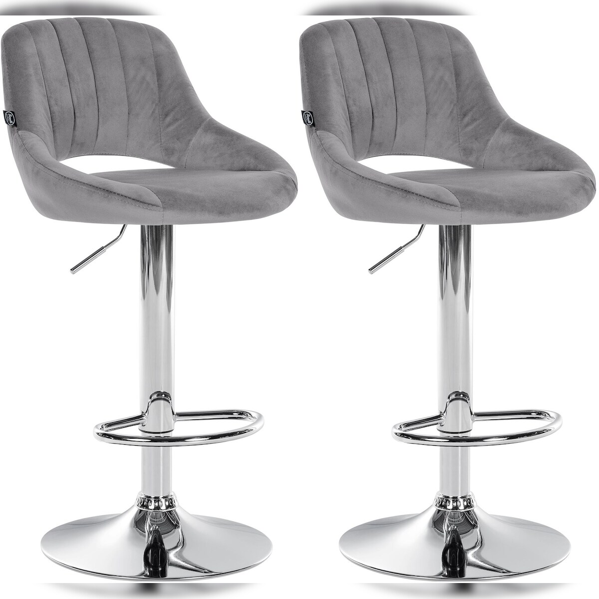 CLP 2er Set Barhocker Milet Samt dunkelgrau/Metall in Chromoptik
