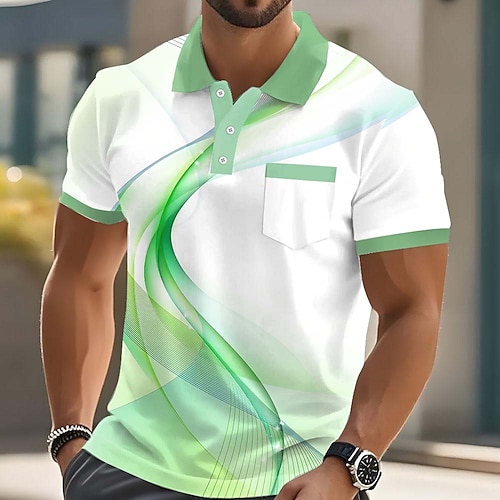 Per uomo Geometrico Linea Polo Manica Corta Magliette polo Camicie con Colletto Business Casual All'aperto Affari Athleisure Abbigliamento quotidiano Bottoni Tasca Stampa 3D Estate Nero Rosso Blu