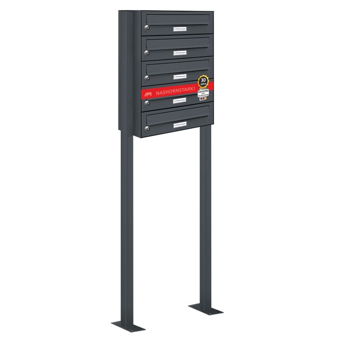 AL Briefkastensysteme 5 Fächer Premium Stand Briefkasten Anlage in RAL 7016 Anthrazit Grau, Post A4, robust, wetterfest, Artikelnummer: 132P5S1P7016