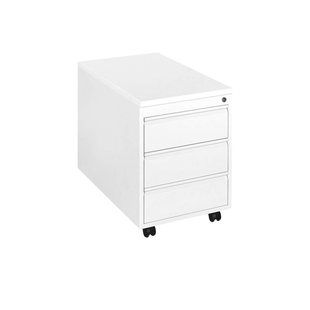 CEHA Büro- und Rollcontainer 790 mm Tiefe aus Stahl mit 3 Schüben in signalweiß und Holztop in Dekor weiß