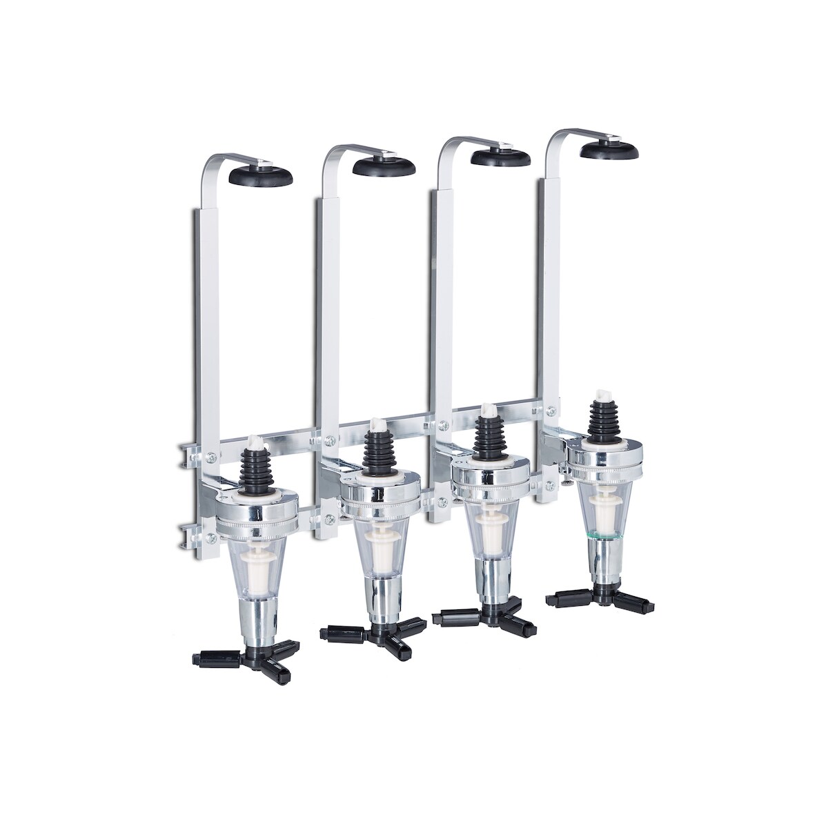 Relaxdays Flaschenhalter Wand, HxBxT: 36 x 35,5 x 11 cm, für 4 Flaschen Schnaps, Limonade, Getränkespender, silber