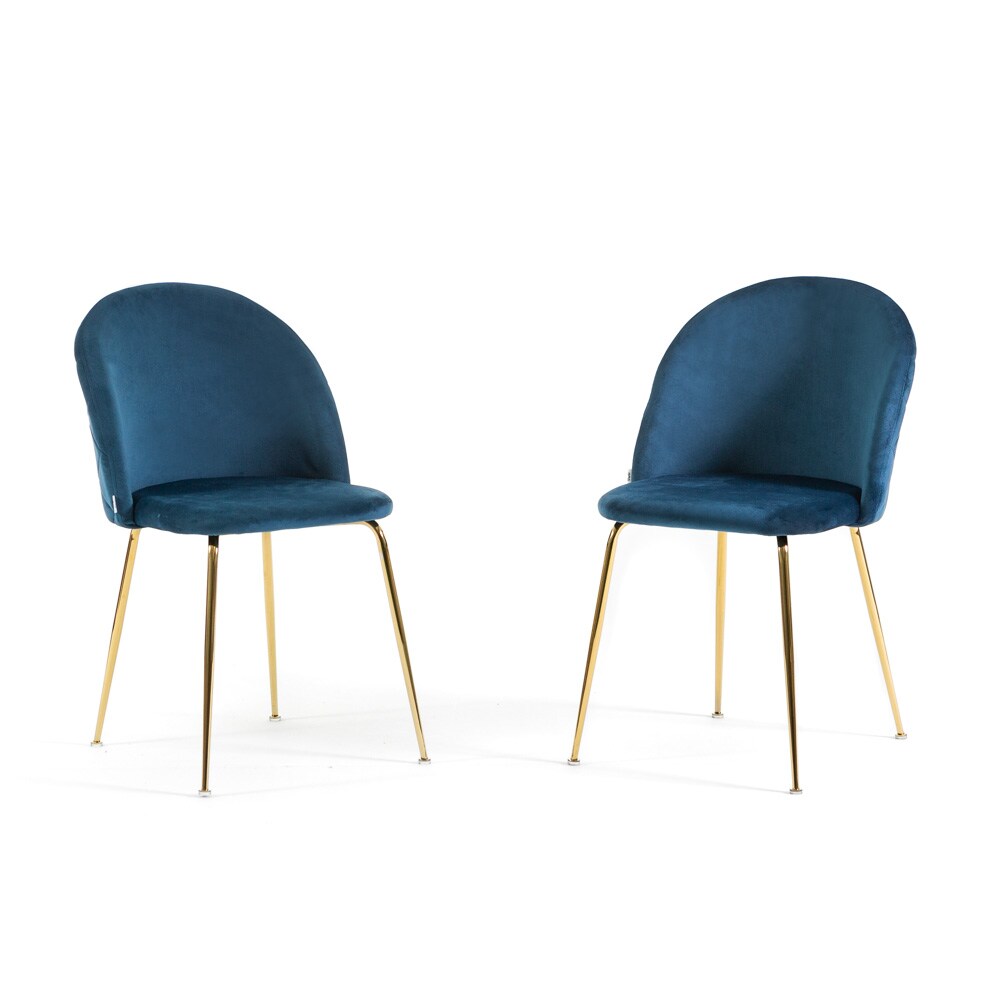 RATTATAN Set aus 2 Innenstühlen aus Samt, gepolstert, mit Metallbeinen, elegantes Design für Küche, Esszimmer, Bar und Restaurant – Sara – Blau/Gold