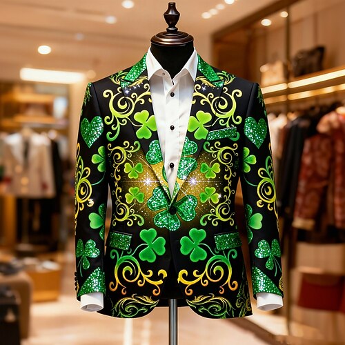San Patrizio Per uomo Quadrifoglio Giacca blazer Cappotto Di tendenza Confortevole Traspirante Artistico Casual Quotidiano Abbigliamento da sera Festival Tasca Stampa 3D Bottoni Tutte le stagioni
