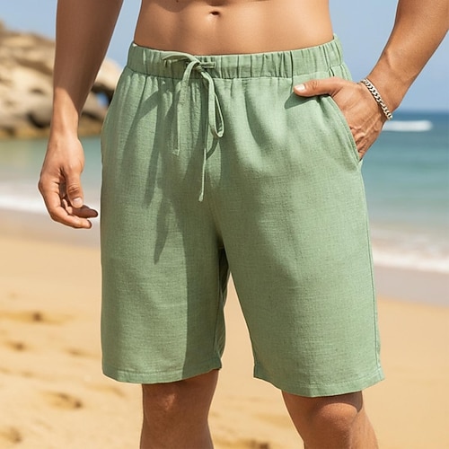 Per uomo Shorts di Lino Pantaloncini Estivi Shorts da Spiaggia Coulisse Elastico in vita Gamba Dritta Semplice Comodità Morbido Lunghezza al ginocchio Quotidiano Spiaggia Moda Chic Moderno Nero
