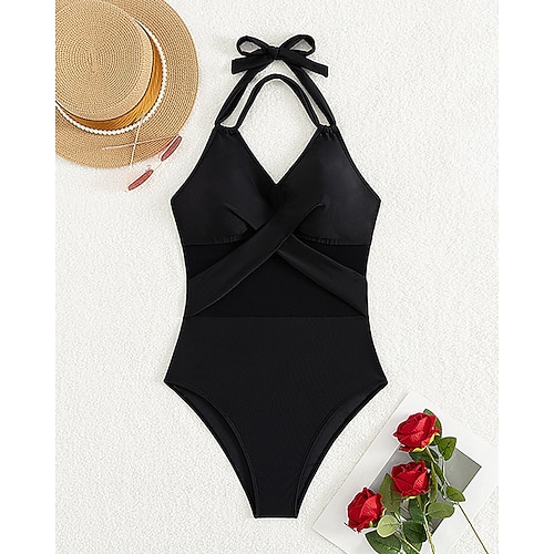 Per donna Costume da bagno Costumi da bagno interi Rete Costume da Bagno Tinta unita Costumi da bagno Blu Nero Protezione UV Traspirante Senza Maniche - Surf Spiaggia Vacanze Estate