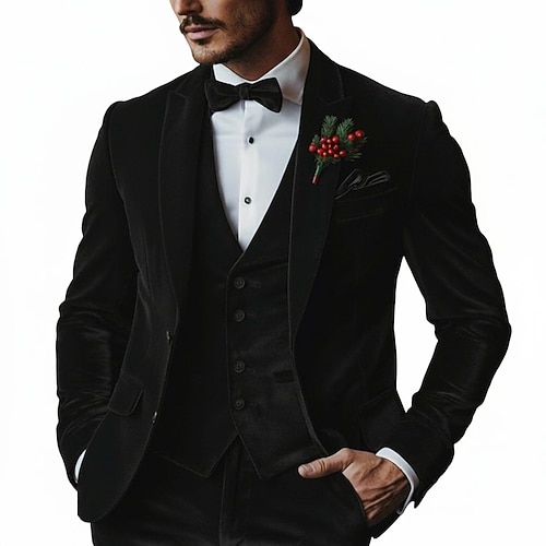 Uomo Matrimonio Affari Abiti da festa Bavero classico Nero Borgogna Formale Tinta unita Vestibilità aderente 3 pezzi Monopetto a un bottone