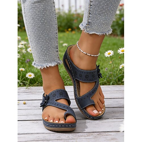 sandali da donna con anello per le dita impreziositi da fiori bianchi: sandali casual e comodi per la primavera, l'estate e l'uso quotidiano