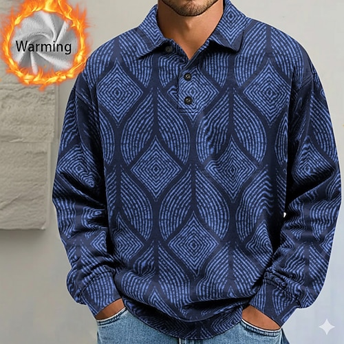 Per uomo Astratto Geometrico Polo Camicie termiche Manica Lunga Magliette polo Bavero Casual Athleisure Ferie Abbigliamento quotidiano Stampa 3D Autunno Inverno Blu Viola Marrone