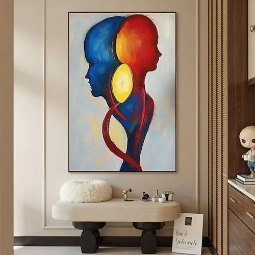 dipinto a mano originale coppia di amanti dipinto a olio su tela grande dipinto a olio arte murale dipinto astratto dipinto blu rosso dipinto personalizzato decorazione da parete per soggiorno