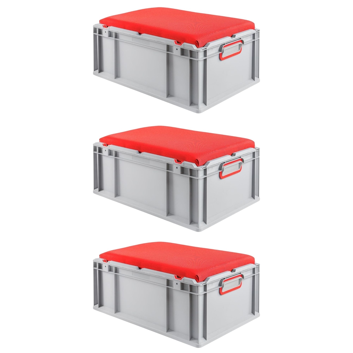PROREGAL 3x Eurobox NextGen Seat Box Rot | HxBxT 26,5x40x60cm | 44 Liter | Griffe geschlossen | Eurobehälter, Sitzbox