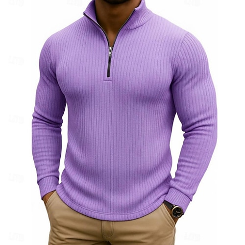 Per uomo Polo Polo con zip a un quarto Abbigliamento quotidiano Data Zip a un quarto Manica Lunga Moda Essenziale Semplice Cerniera Primavera Autunno Vestibilità regolare Blu marino Viola Verde