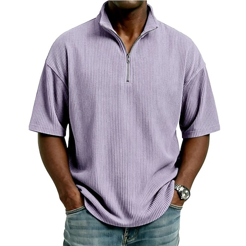 Per uomo Polo Camicia di Velluto a Coste Quotidiano All'aperto Zip a un quarto Manica Corta Moda Essenziale Semplice Cerniera Estate Vestibilità su misura Blu Nero Bianco Rosso Blu marino Viola Polo