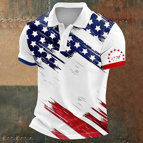 Giorno dell'Indipendenza Americana Per uomo Bandiera Americana Polo Manica Corta Magliette polo Bavero Casual Athleisure Abbigliamento quotidiano Abito da festa Stampa 3D Bottoni Estate Blu Nero