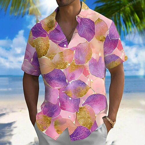 Per uomo Foglia Piante Tropicali Camicia hawaiana estiva Camicia con Bottoni Camicia Aloha Manica Corta Hawaiano Ferie Abbigliamento mare Estate Primavera Collo ripiegato Stampa 3D camicie con