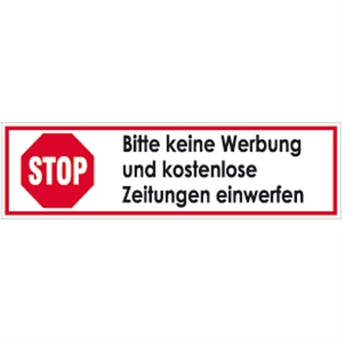 Aufkleber STOP Bitte keine Werbung u. kostenlose Zeitungen..., Folie, 70x20mm, 7 St./Bogen