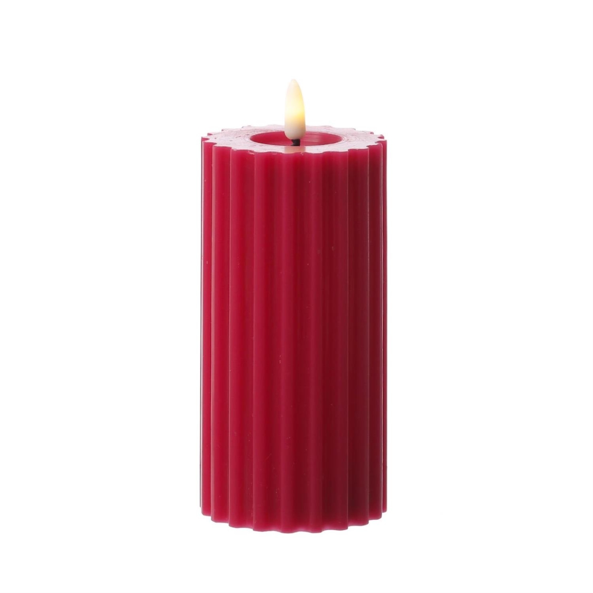 LED Kerze Liv Echtwachs gerillt mit Rillen flackernd H: 17,5cm Timer beerenrot