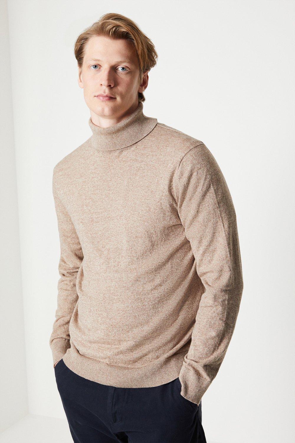 Burton Mens Cotton Rich Roll Neck Jumper - Beige - Size Large | Burton Sale | Discount Designer Brands