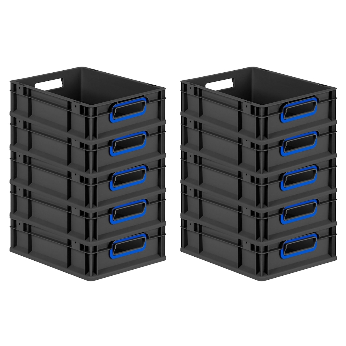 PROREGAL SparSet 10x Eurobox NextGen Color, HxBxT 12x30x40cm, 11 Liter, Griffe blau offen, Schwarz, Eurobehälter, Transportbehälter