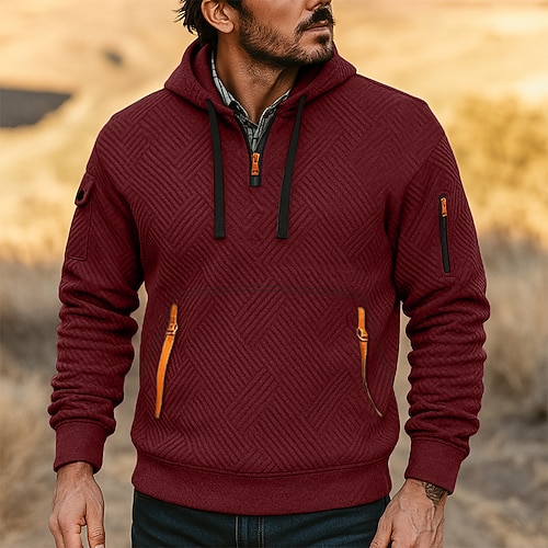 Per uomo Felpa con cappuccio Felpa con cappuccio e zip corta Felpa con cappuccio in pile Felpa con cappuccio tattica Nero Bianco Rosso Blu Cachi Con Cappuccio Semplice Cerniera Testurizzato Sport