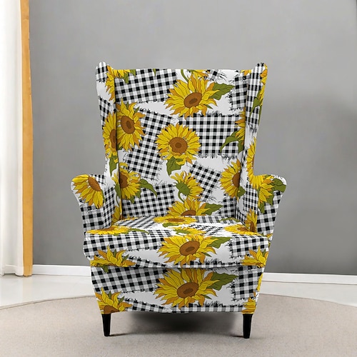 Copripoltrona con schienale alto, copridivani in poliestere con stampa geometrica a righe floreali per soggiorno, camera da letto e ufficio domestico