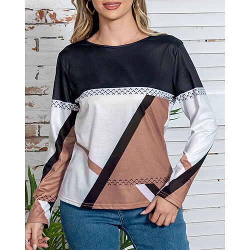 Per donna Blusa Top Eleganti Geometrico Blocco di colori Semplice Vintage Tropicale Signore Manica Lunga Girocollo Top Regolari Lavoro Quotidiano Ferie Arricciato Patchwork Drappeggiato Rosso Blu