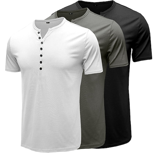 Maglietta da uomo 3 pezzi in misto cotone 80%, manica corta, tinta unita, semplice, con bottoni, stile Henley, casual, per tutti i giorni, estate e primavera maglietta Henley blu e nera per tutte le