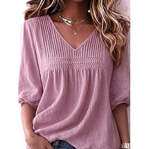 Per donna Camicia Tinta unica Semplice Vintage Elegante Scollo a V Top Regolari Blu Bianco Rosa Viola chiaro Estate Primavera