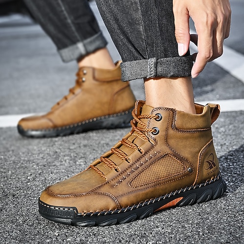 scarponi da trekking marroni da uomo: resistenti scarpe da ginnastica in similpelle con suola antiscivolo per avventure all'aria aperta e abbigliamento invernale