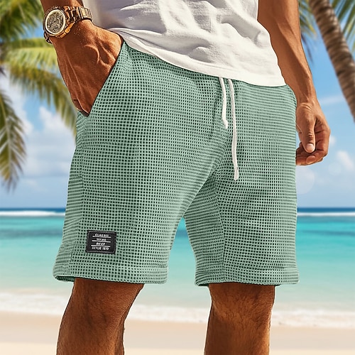 Per uomo Pantaloncini Waffle Pantaloncini Estivi Shorts da Spiaggia Pantaloncini casual Coulisse Elastico in vita Tinta unica Comodità Lunghezza al ginocchio Quotidiano All'aperto Abbigliamento