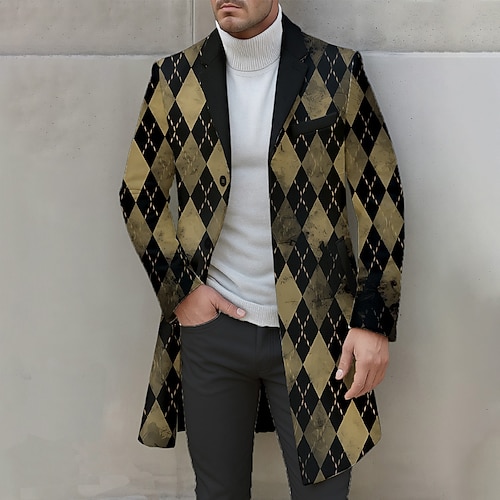 Per uomo Geometrico Rombi Cappotto Casual Affari Quotidiano Stampa 3D Bottoni Tasca Frontale Primavera Autunno Inverno Dentellato Manica Lunga Giallo Arancione Marrone