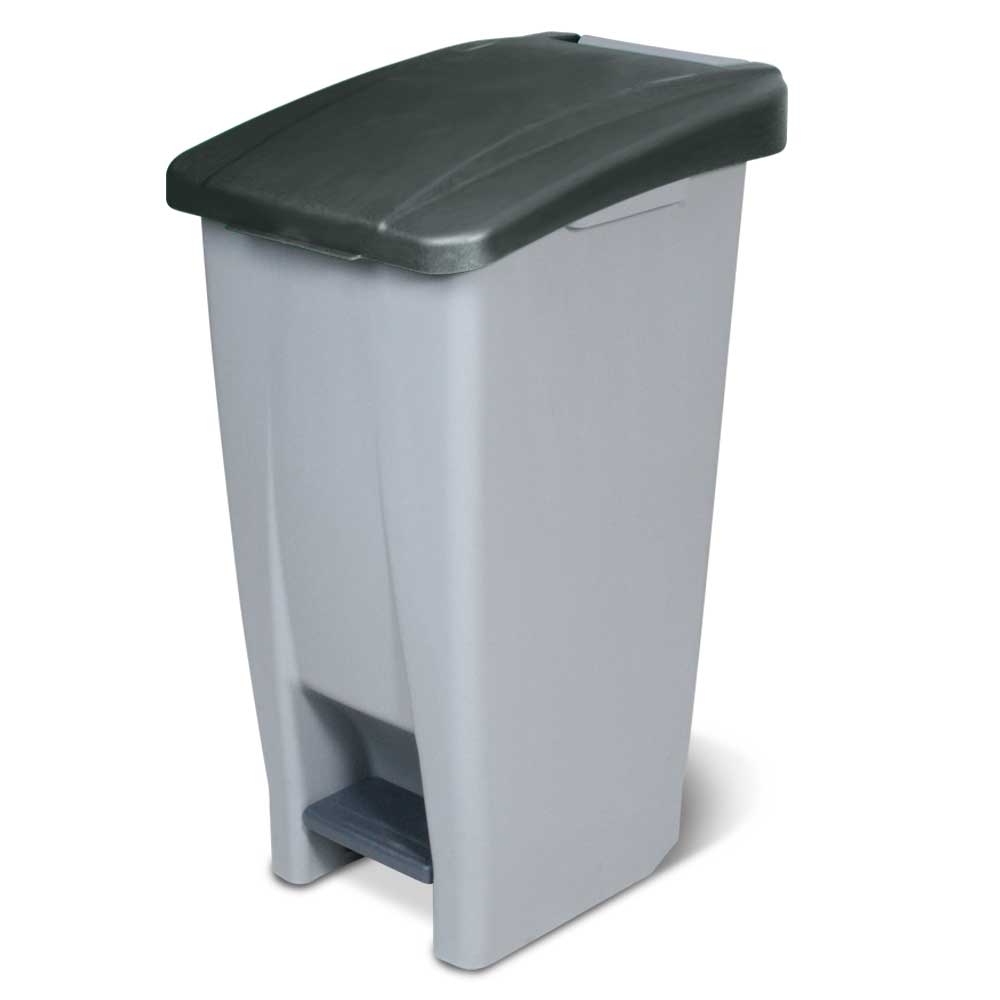 BRB Tretabfalleimer mit Rollen, Inhalt 60 Liter, HxBxT 700 x 380 x 490 mm, Korpus grau/Deckel schwarz