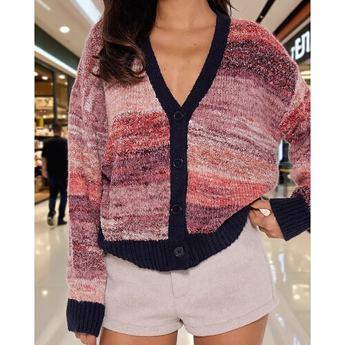 Per donna Felpa Cardigan Vintage Streetwear Casual A righe Scollo a V Bottoni Lavorato a maglia Stampato Manica Lunga Top Regolari Maglia Quotidiano Ferie Uscire Rosso Blu Autunno Inverno