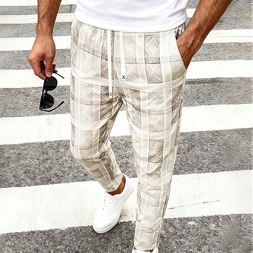 Per uomo Pantaloni Pantaloni casual Coulisse Tasca Elastico in vita Plaid Comodità Morbido All'aperto Quotidiano Ferie Moda Stile Classico Cáqui Escuro CachiA Micro-elastico