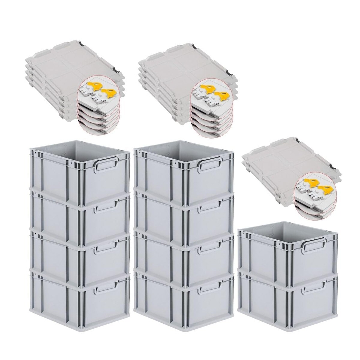 PROREGAL SuperSparSet 10x Eurobox NextGen Economy mit Scharnierdeckel & gelben Verschlüssen, Griffe zu, HxBxT 22x30x40cm, 20L, Eurobehälter, Box