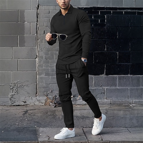Per uomo Polo con zip a un quarto Polo da golf Esterno Casual Chiusura lampo quarto Manica lunga Di tendenza Moderno Tinta unica Lavorato a maglia Primavera Autunno Taglio standard Nero Bianco Blu