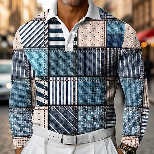 Per uomo Blocco di colori Geometrico Magliette Polo a Nido d'Ape Manica Lunga Magliette polo Camicie con Colletto Business Casual Affari Abbigliamento da lavoro Abbigliamento quotidiano Bottoni