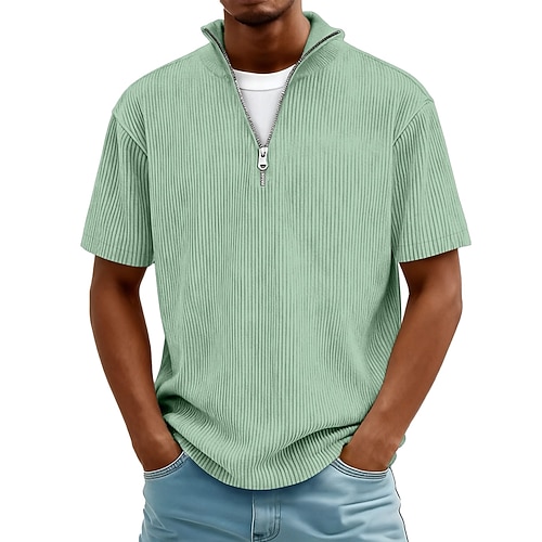 Per uomo Polo Camicia di Velluto a Coste Vacanza Streetwear Zip a un quarto Manica Corta Moda Essenziale Semplice Estate Vestibilità su misura Viola Nero Bianco Vino Blu marino Azzurro cielo Polo