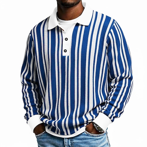 Per uomo Strisce orizzontali Magliette Polo a Nido d'Ape Polo da rugby Testurizzato Manica Lunga Magliette polo Bavero Abbigliamento Sportivo Casual Scuola Athleisure Abbigliamento quotidiano Stampa