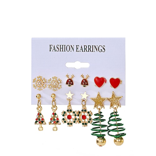 set di orecchini natalizi da donna, lega placcata in oro con motivi festivi, renne, stelle e alberi di Natale, gioielli natalizi per feste e celebrazioni invernali