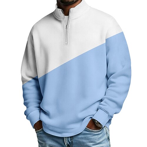 Per uomo Blocco di colori Polo con zip Manica Lunga Magliette polo Colletto alla coreana Casual Scuola Athleisure Ferie Abbigliamento quotidiano Stampa 3D Polo con cerniera a un quarto Primavera