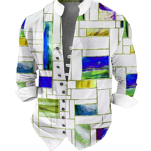 Per uomo Blocco di colori Motivo Geometrico Geometria Camicia Camicia con Bottoni Manica Lunga Moda Streetwear Designer All'aperto Casuale Quotidiano Estate Primavera Autunno Collo alla coreana