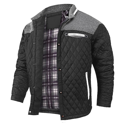Per uomo Giacca trapuntata Giacca Casual Vacanza Quotidiano Caldo Patchwork Tasca Autunno Inverno Blocco di colori Moda Classico Collo alla coreana Regolare Nero Blu Cachi Verde militare Giacca
