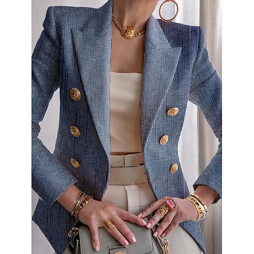 Per donna Blazer Caldo Confortevole Bottoni Vintage Moda Classico Moderno A righe Formale Vacanza Casa Casuale Doppiopetto Corto Bavero classico Vestibilità regolare Manica Lunga Capispalla Giallo